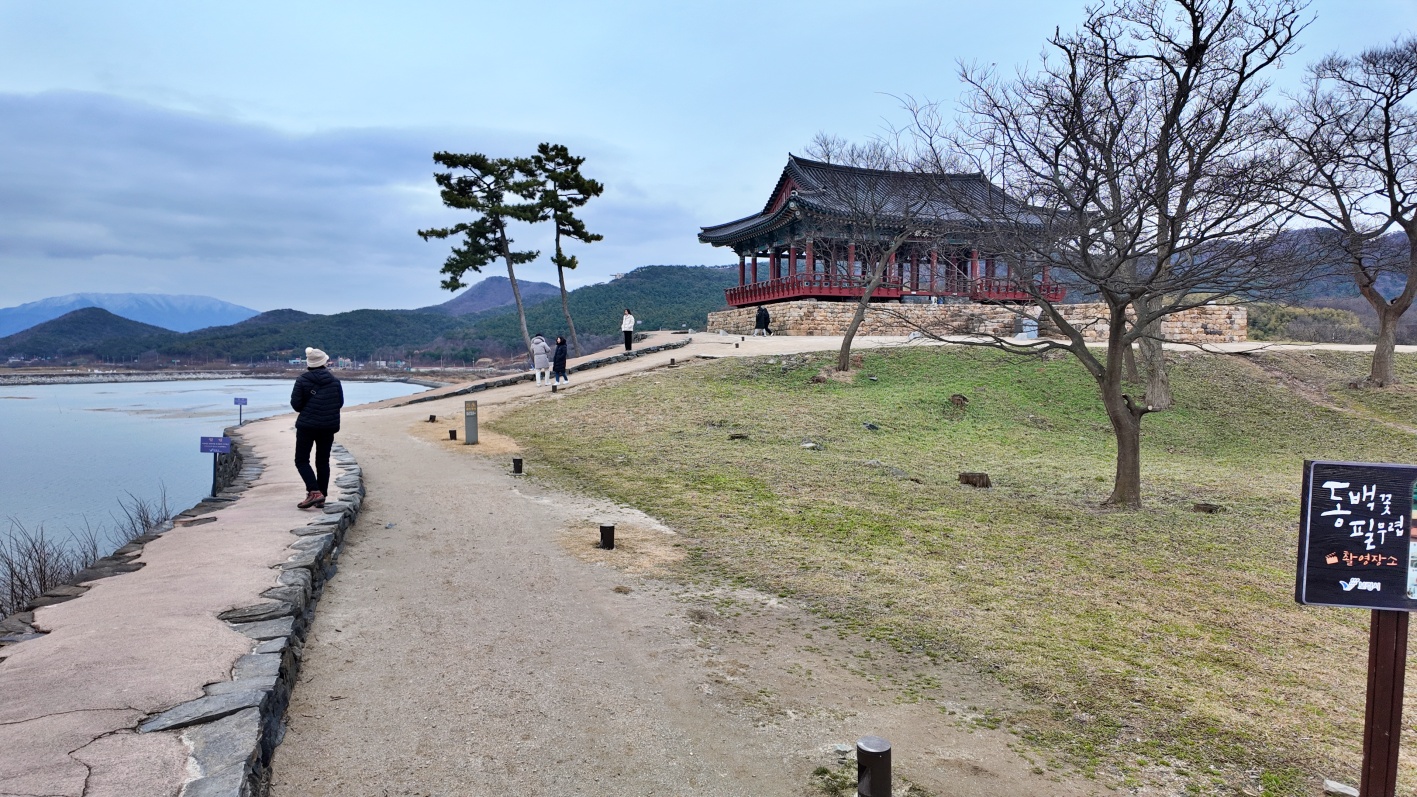 충청수영성의 영모정과 앞쪽의 촬영지 간판